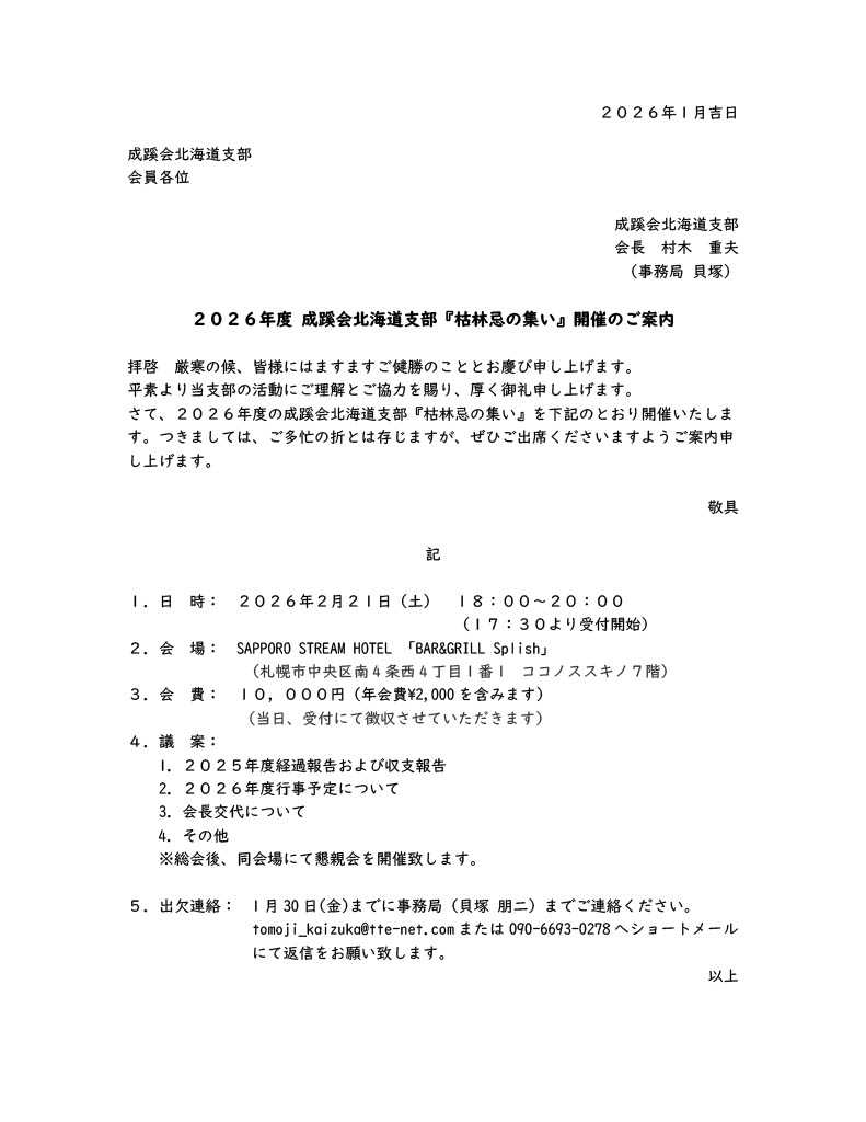 北海道支部 成蹊会