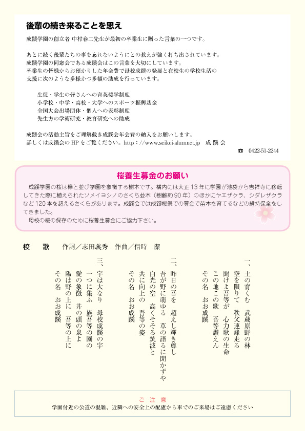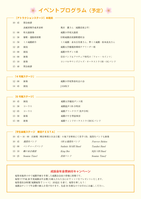 4月3日(日)学園内で、成蹊桜祭を開催する予定です。