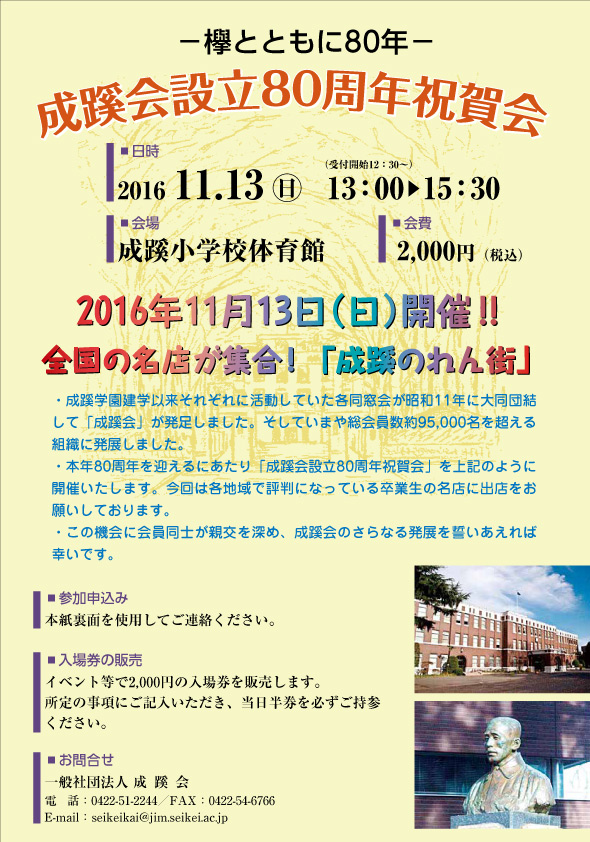 成蹊会設立80周年祝賀会のご案内(2016/11/13開催)