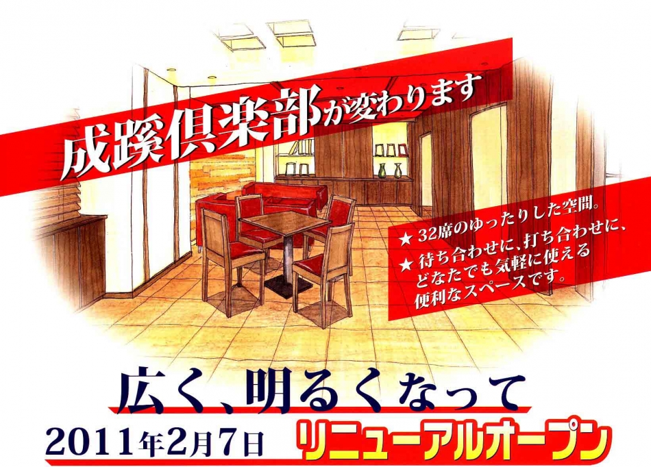「成蹊倶楽部」リニューアルオープンのお知らせ 2月7日