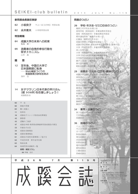 「成蹊会誌」は、成蹊会の年会費納入者に送付されておりますので、年会費未納の方は納入手続をお願いいたします。