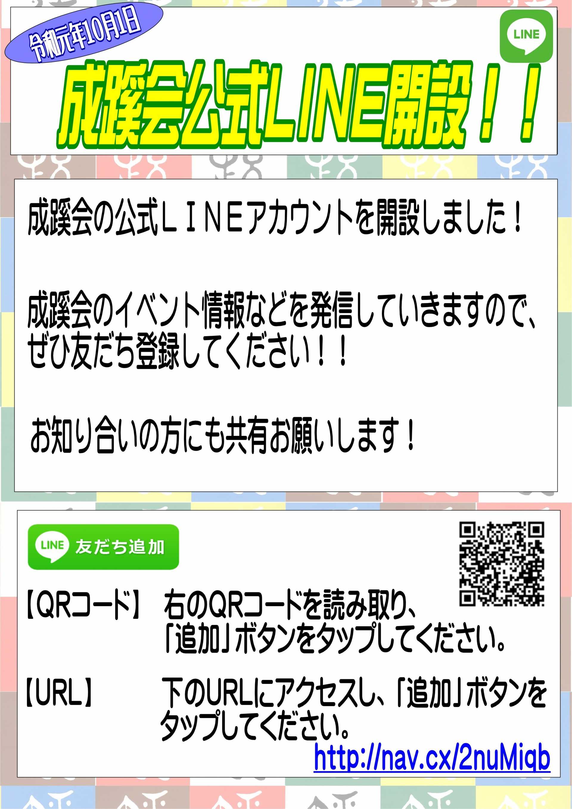 成蹊会のイベント情報などを発信していきますので、ぜひ友だち登録してください!!